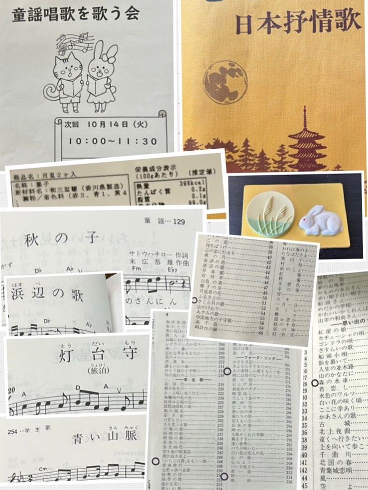 毎月第二火曜日は童謡唱歌を歌う会。5人で和やかに。ラジオ体操と発声練習に始まり、まずは秋の子を歌いました。昼間は暑いけど、朝晩は秋の気配感じるこの頃、ぴったりの曲です。そのあとは今年の三曲。浜辺の歌、灯台守、青い山脈。おやつタイムは和三盆の干菓子、うさぎと満月にススキのセット。美味しい!後はリクエストタイム。5人がリクエストした曲は、あの素晴らしい愛をもう一度、昴、いちご白書をもう一度、桜貝の歌、森の水車。先生の生ピアノで楽しく歌いました。