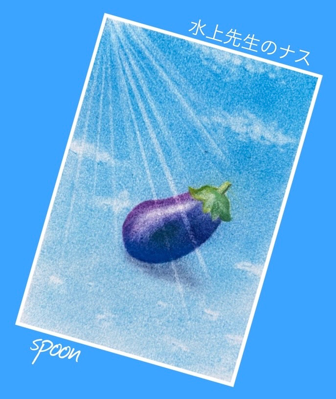 水上先生のなすの写真を見て描いてみました。空に雲が浮かんでて、ナスも浮かんでるのに、影がある、とっても不思議な図案です。茄子紺の色を出すのにあれこれやってみました。なんとなくそれっぽくということで。