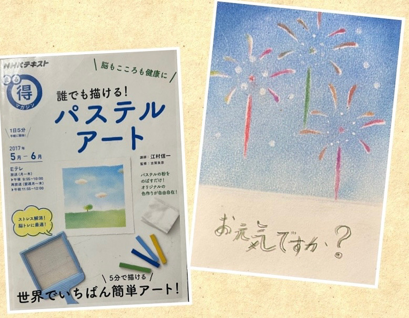 8年前に購入したNHKのパステルアートのテキストから花火を描いてみました。