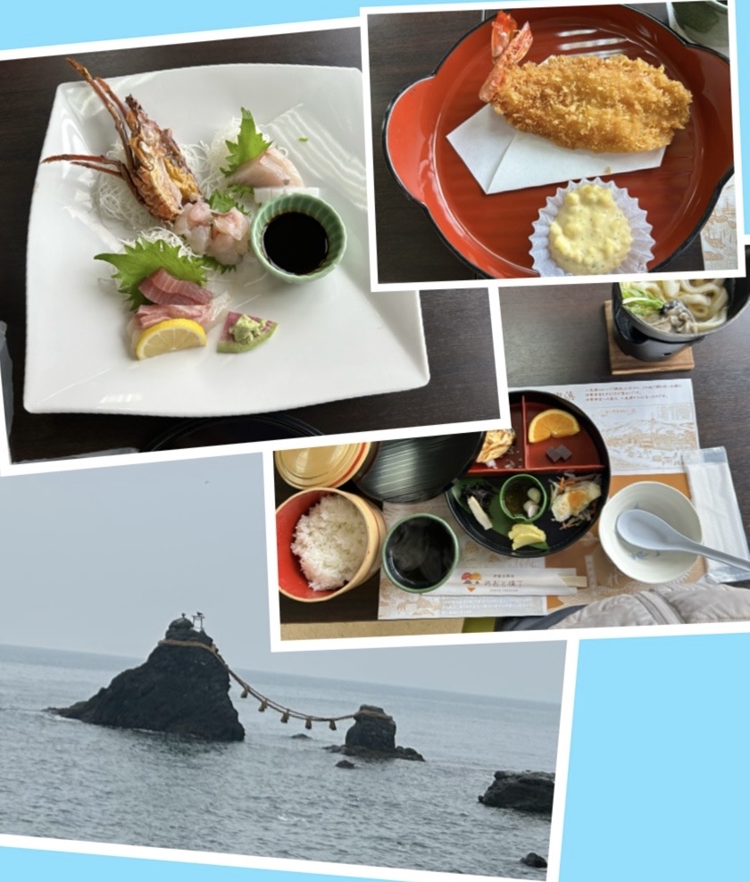 少しご無沙汰でした。この10日あまり、頑張った自分へのご褒美にバスツアー。美味しいものたくさんいただいてエネルギー充電して、明日からのおしごとに備えます!午後は外宮、内宮回って帰宅予定です